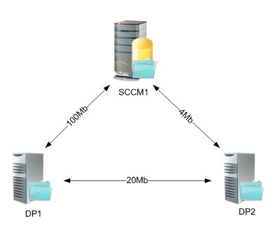 So DP2 will only get content distributed from DP1 therefore easing the load on the 4Mb link between SCCM1 and DP1.