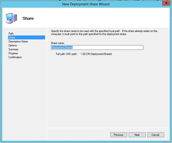 Choose your preferred path for the deployment share…