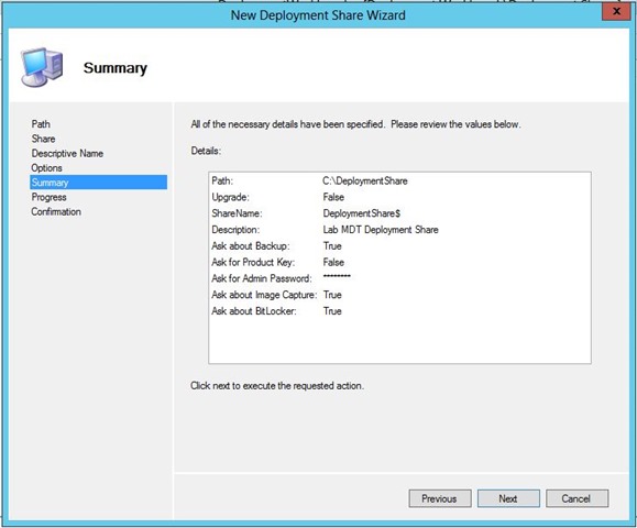 Check the summary and click Next.