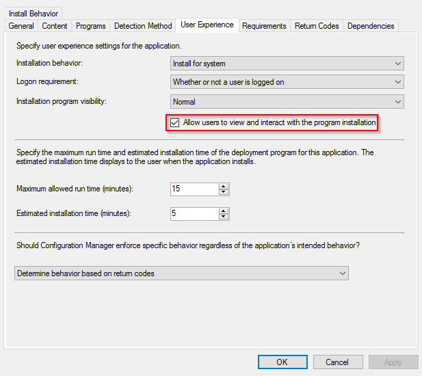This new setting is within the deployment type of an application and you can simply tick the box to allow a user to interact with the application installer even though the application is being installed as the local system account I.e. an administrator. This could be useful for many software applications where there are maybe user specific details to be entered such as a user name or license code etc. I’m sure there are many people with use cases for this one and I’d love to hear more about their examples.