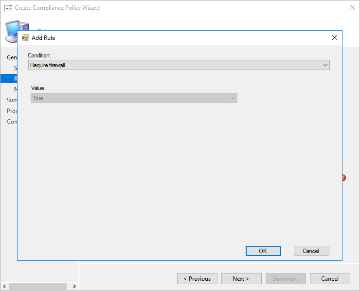 - Require Firewall. Specify whether a device must have a firewall enabled and monitoring all networks.
