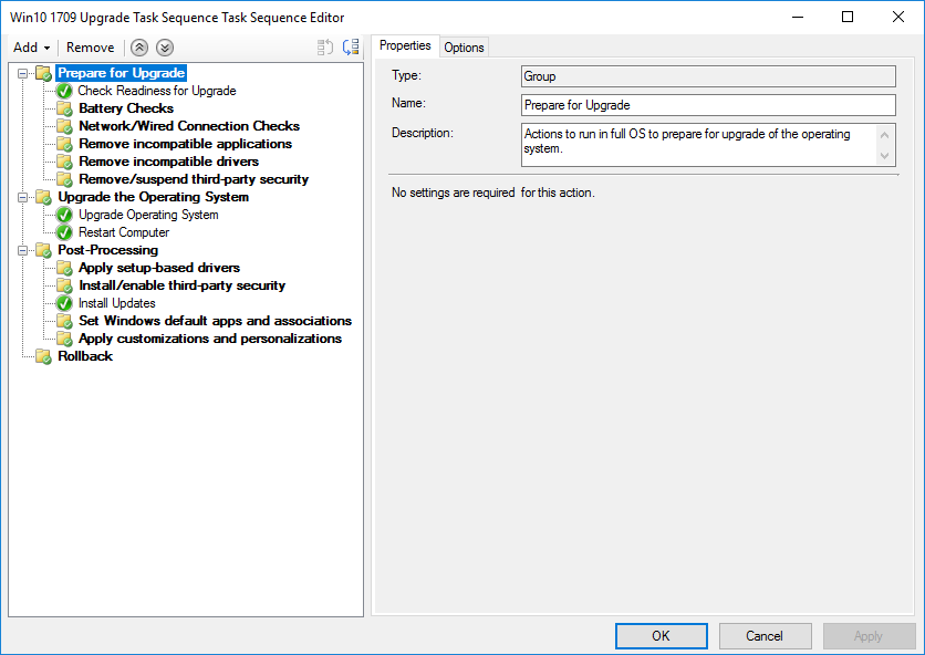 Another of the enhancements delivered with Configuration Manager Technical Preview 1802 are extra groups added to the in-place upgrade task sequence. This includes groups in preparation for upgrade and also post-processing groups.