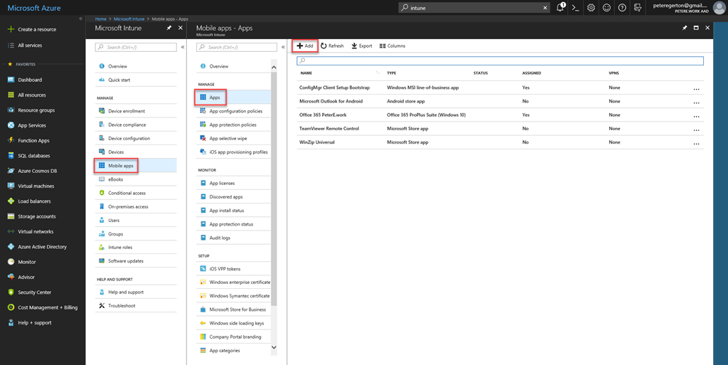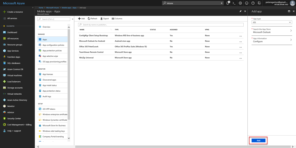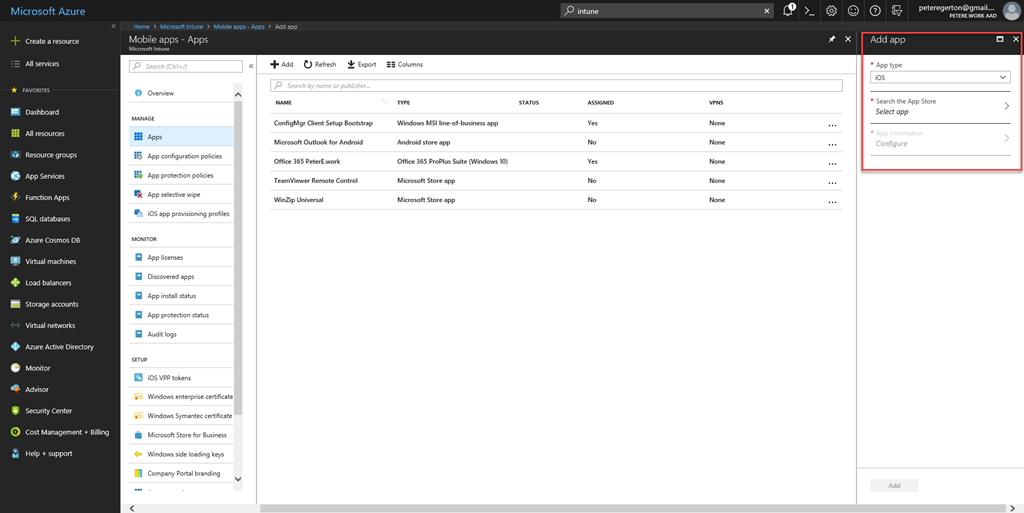 Through http://portal.azure.com, open Microsoft Intune. Browse to the Mobiles Apps blade.