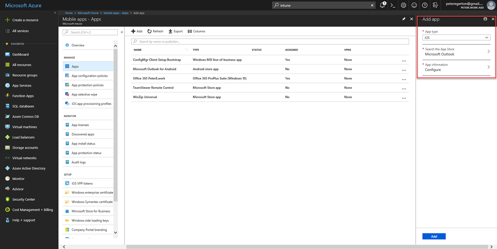 This guide will show an example of how to provision the Microsoft Outlook iOS store app into Microsoft Intune.