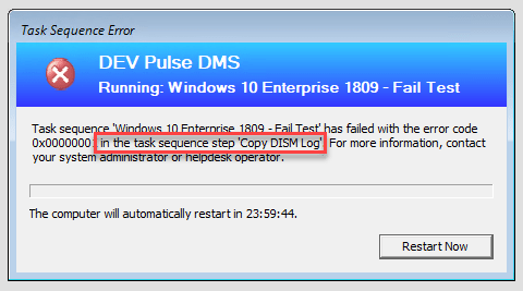 Also new, we have additional information when a task sequence fails. The usual dialog failure window will now show us the task sequence step that failed. Super useful.
