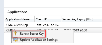 So I can right click the Application or use the ribbon to renew the Secret Key. FYI, this “Application” translates as an App Registration in the Azure portal, this may not be initially clear to you.
