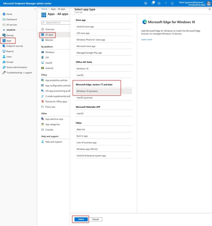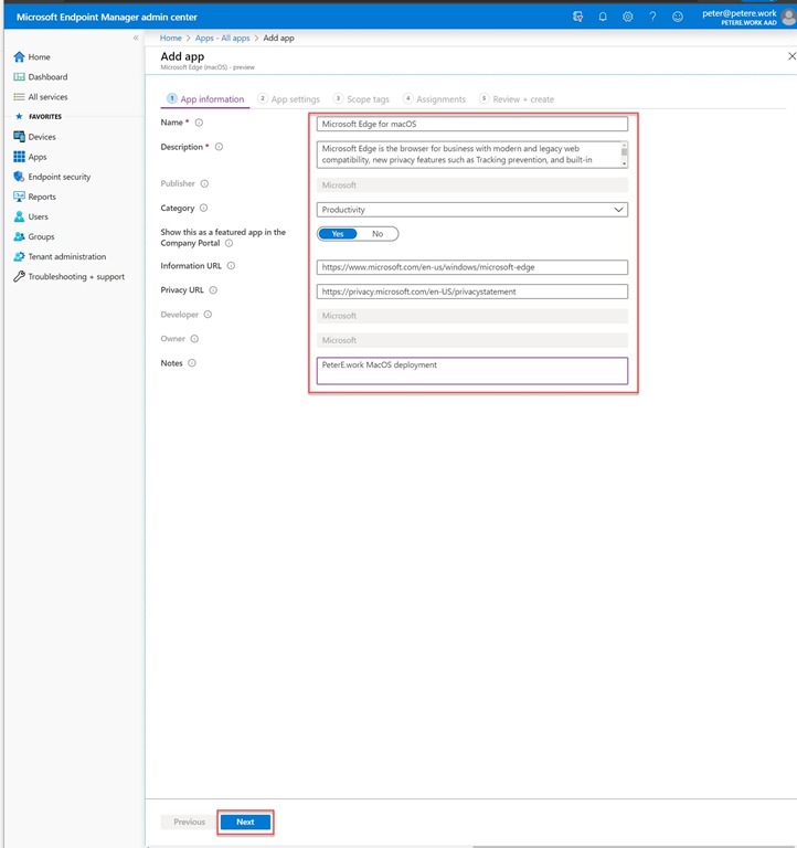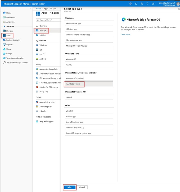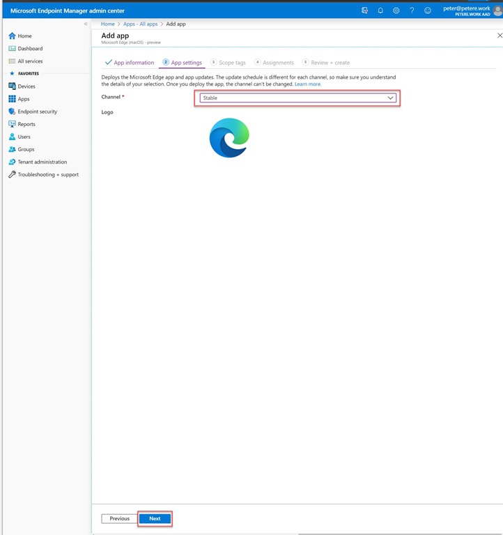 At the time of writing, these were in preview and we can deploy to Windows 10 and MacOS from the get-go. The wizard is provided for us as we can manage Edge outside of the OS as we can with Office 365 for example.