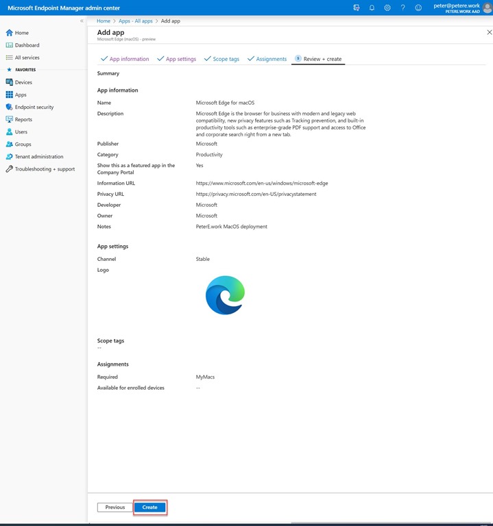 You will have noticed in the wizard there is also an option for deploying Edge to MacOS. Not necessarily the most popular choice with Mac users but it is a favourite with the admin as we can control this a little more than Safari for example. Besides that, it’s actually a pretty nice web browser so you might just want to give the user a choice whilst maintaining an element of control.