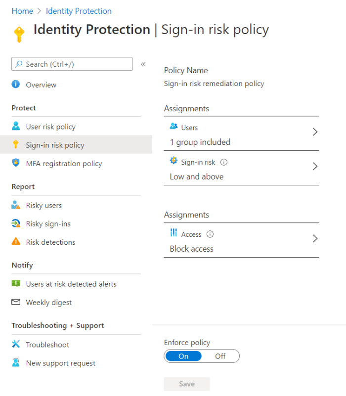 - Sign-in risk policy