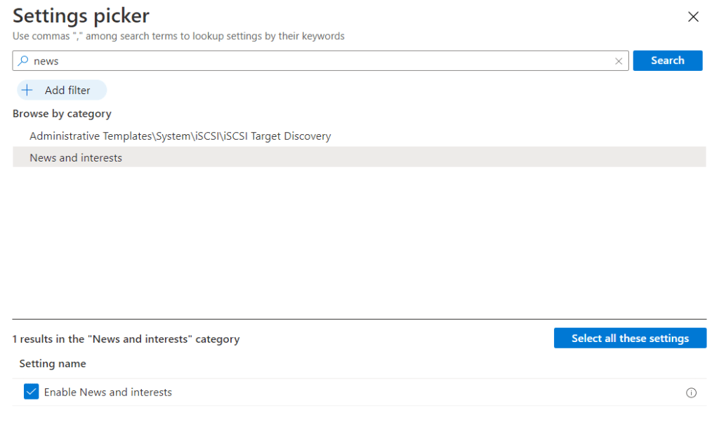 If you prefer to go the custom route, then you can create a custom configuration profile and assign that to your devices. The Windows CSP reference for this setting can be found here – https://docs.microsoft.com/en-us/windows/client-management/mdm/policy-csp-experience#experience-allownewsandinterestsonthetaskbar