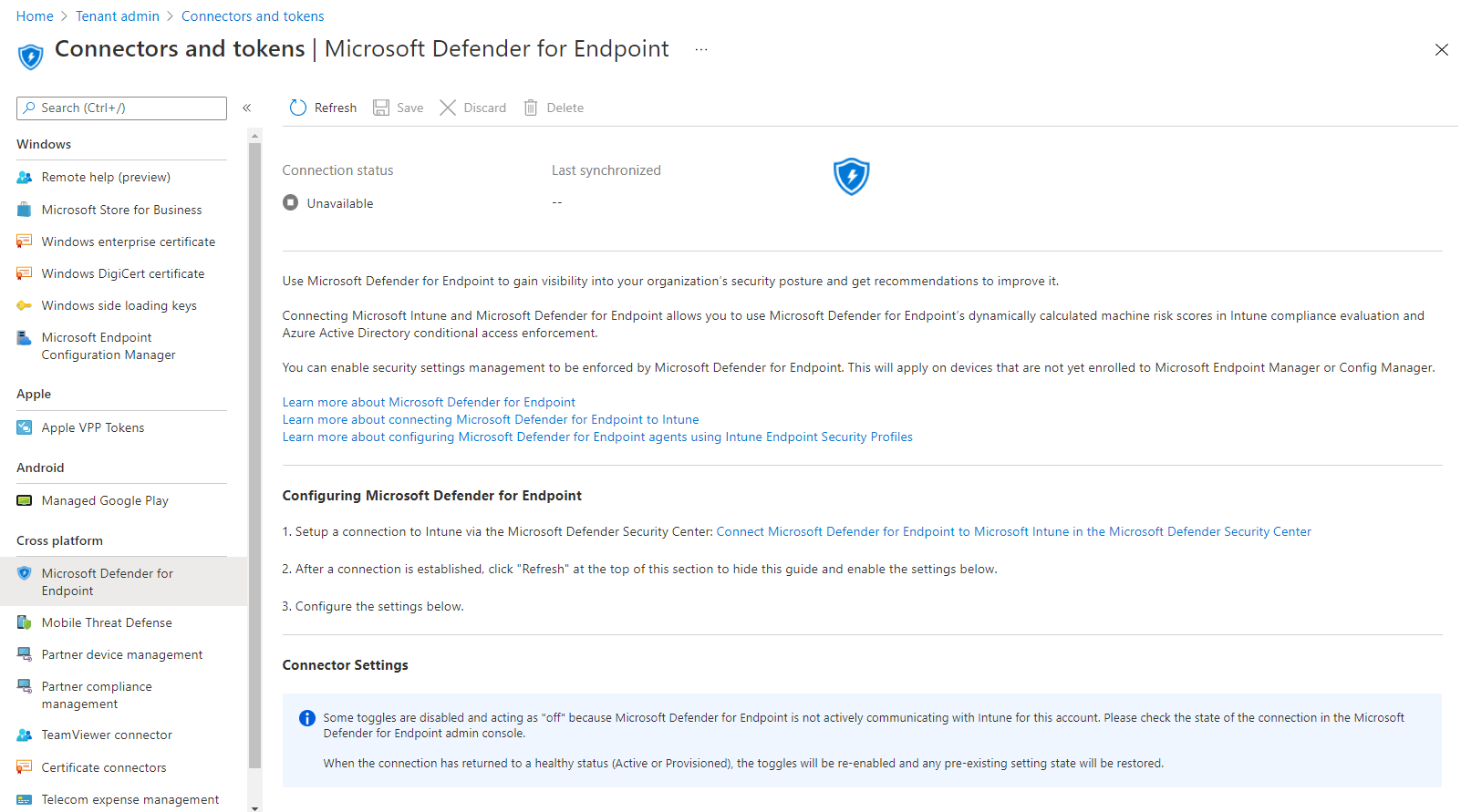 If you are using role-based access control (RBAC) in your Microsoft Endpoint Manager or Intune environment then you may be creating custom roles. I was asked recently about the permission required to view the Defender for Endpoint connector as setting what was seemingly the obvious option didn’t do the trick.